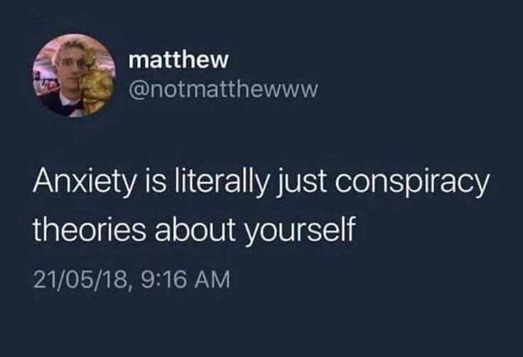 This wouldn’t be a proper newsletter exit without the weekly meme dump. I’ve been quite the anxious girl all week: