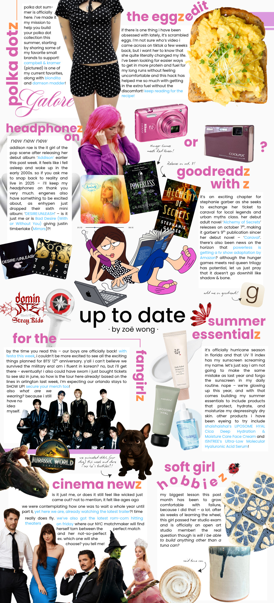 Before we get into it, we’re doing a little intro: Hi! Whether you’re new or a returning subscriber, my name is Zoë, the creator of up to date! This is a weekly newsletter column that houses all of the current topics we’re passionate about over here at 21st century girl, from what’s going on in music & entertainment, skincare I can’t stop buying, books I keep purchasing but never get to reading, outfits I keep repeating, and fibre arts I can never seem to finish — this column covers it all. Oh, and let’s not forget the weekly meme dump. Trust me, it’s worth scrolling all the way until the end.