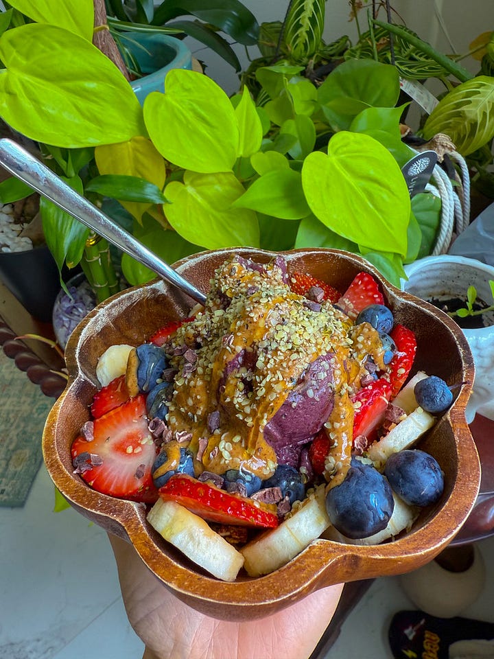 I simply added all of those to the ninja creami container, gave it a good stir, and let it sit in the freezer for 4ish hours before running through the ninja creami under the smoothie bowl setting for 2-3 rounds. Serve with some fresh granola, fruit, a generous amount of almond butter and honey, and a sprinkled of hemp seeds and cacao nibs — and you’re golden! Honestly the perfect start to summer if I do say so myself. It feels like 2021 Zoë is making a comeback!